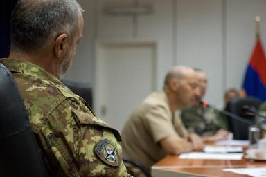 | Keywords: New SACEUR makes first visit to Kosovo DVIDS461462.jpg en Adm James Stavridis supreme allied commander europe today travelled to Pristina Kosovo to meet with Kosovo Security Force Minister Fehmi Mujota commander of NATO's Kosovo Force; Lt Gen Giuseppe Emilio Gay; and KFOR Multinational Task Forces commanders Stavridis took the opportunity to discuss the current Kosovo security situation NATO's recent decision to reduce the profile of NATO forces in Kosovo the KSF training and recruiting progress training resources and equipment requirements as well as the current status of the EULEX deployment I am very satisfied with the latest developments in Kosovo The NAC decision to further reduce the profile of NATO forces in Kosovo is a clear indication of confidence in local capacity capability and responsibility The government of Kosovo is steadily taking on more and more of the responsibility for ensuring the rule of law and governance of the Kosovo population said Stavridis after meeting with Minister Mujota NATO will remain committed to promoting peace stability prosperity and respect for human rights in the region Our goal is to see the responsibility for maintaining peace shift to the local population and institutions further emphasized Stavridis Addressing MNTF commanders Stavridis said The progress NATO achieved in Kosovo is significant and KFOR's move toward Deterrent Presence is a sign of the Alliance's confidence in the progress made It allows NATO to adopt a new force structure concept reducing the number of troops deployed in Kosovo Stavridis continued During his Kosovo visit Stavridis also visited Gazimestan monument the site of the Battle of Kosovo which took place in 1389 and Sultan Murad's Tomb It was Admiral's Stavridis first visit in Kosovo since assuming his post as Supreme Commander Allied Powers Europe commander of NATO's Allied Command Operations earlier this month Stavrisdis is briefed in the Batcave in HQKFOR during his first visit to Kosovo 2009-07-29 Film City https //www dvidshub net/image/461462 090729-D-+++++-124 2011-09-23 12 50 PRISTINA ZZ PD-USGov James Stavridis Images from DoD uploaded by Fæ |