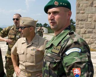 | Keywords: New SACEUR makes first visit to Kosovo DVIDS461468.jpg en Adm James Stavridis supreme allied commander europe today travelled to Pristina Kosovo to meet with Kosovo Security Force Minister Fehmi Mujota commander of NATO's Kosovo Force; Lt Gen Giuseppe Emilio Gay; and KFOR Multinational Task Forces commanders Stavridis took the opportunity to discuss the current Kosovo security situation NATO's recent decision to reduce the profile of NATO forces in Kosovo the KSF training and recruiting progress training resources and equipment requirements as well as the current status of the EULEX deployment I am very satisfied with the latest developments in Kosovo The NAC decision to further reduce the profile of NATO forces in Kosovo is a clear indication of confidence in local capacity capability and responsibility The government of Kosovo is steadily taking on more and more of the responsibility for ensuring the rule of law and governance of the Kosovo population said Stavridis after meeting with Minister Mujota NATO will remain committed to promoting peace stability prosperity and respect for human rights in the region Our goal is to see the responsibility for maintaining peace shift to the local population and institutions further emphasized Stavridis Addressing MNTF commanders Stavridis said The progress NATO achieved in Kosovo is significant and KFOR's move toward Deterrent Presence is a sign of the Alliance's confidence in the progress made It allows NATO to adopt a new force structure concept reducing the number of troops deployed in Kosovo Stavridis continued During his Kosovo visit Stavridis also visited Gazimestan monument the site of the Battle of Kosovo which took place in 1389 and Sultan Murad's Tomb It was Admiral's Stavridis first visit in Kosovo since assuming his post as Supreme Commander Allied Powers Europe commander of NATO's Allied Command Operations earlier this month Stavridis is shown around the Gazimestan Monument during his first visit to Kosovo Gazimestan is the n 2009-07-29 https //www dvidshub net/image/461468 090729-D-+++++-179 2011-09-23 12 50 PRISTINA ZZ PD-USGov James Stavridis Images from DoD uploaded by Fæ |