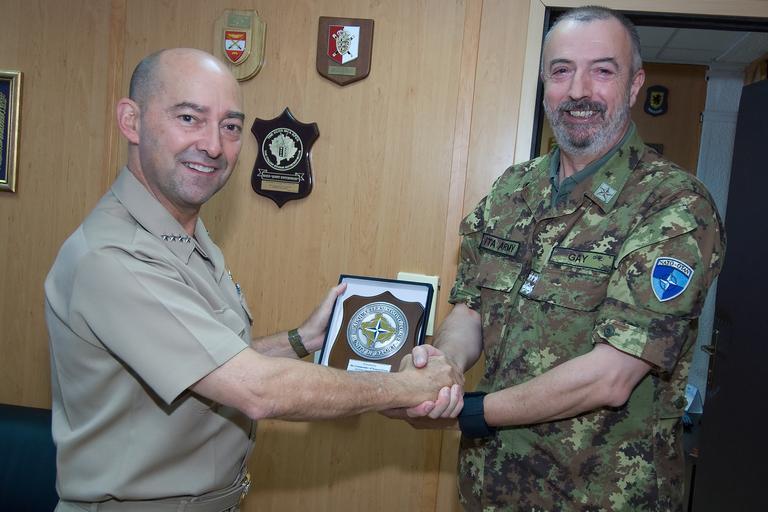 | Keywords: New SACEUR makes first visit to Kosovo DVIDS461442.jpg en Adm James Stavridis supreme allied commander europe today travelled to Pristina Kosovo to meet with Kosovo Security Force Minister Fehmi Mujota commander of NATO's Kosovo Force; Lt Gen Giuseppe Emilio Gay; and KFOR Multinational Task Forces commanders Stavridis took the opportunity to discuss the current Kosovo security situation NATO's recent decision to reduce the profile of NATO forces in Kosovo the KSF training and recruiting progress training resources and equipment requirements as well as the current status of the EULEX deployment I am very satisfied with the latest developments in Kosovo The NAC decision to further reduce the profile of NATO forces in Kosovo is a clear indication of confidence in local capacity capability and responsibility The government of Kosovo is steadily taking on more and more of the responsibility for ensuring the rule of law and governance of the Kosovo population said Stavridis after meeting with Minister Mujota NATO will remain committed to promoting peace stability prosperity and respect for human rights in the region Our goal is to see the responsibility for maintaining peace shift to the local population and institutions further emphasized Stavridis Addressing MNTF commanders Stavridis said The progress NATO achieved in Kosovo is significant and KFOR's move toward Deterrent Presence is a sign of the Alliance's confidence in the progress made It allows NATO to adopt a new force structure concept reducing the number of troops deployed in Kosovo Stavridis continued During his Kosovo visit Stavridis also visited Gazimestan monument the site of the Battle of Kosovo which took place in 1389 and Sultan Murad's Tomb It was Admiral's Stavridis first visit in Kosovo since assuming his post as Supreme Commander Allied Powers Europe commander of NATO's Allied Command Operations earlier this month Stavridis receives a plaque from COMKFOR Lt Gen Giuseppe Gay during his first visit to KFOR o 2009-07-29 left https //www dvidshub net/image/461442 090729-D-+++++-017 2011-09-23 12 37 PRISTINA ZZ PD-USGov James Stavridis Images from DoD uploaded by Fæ |