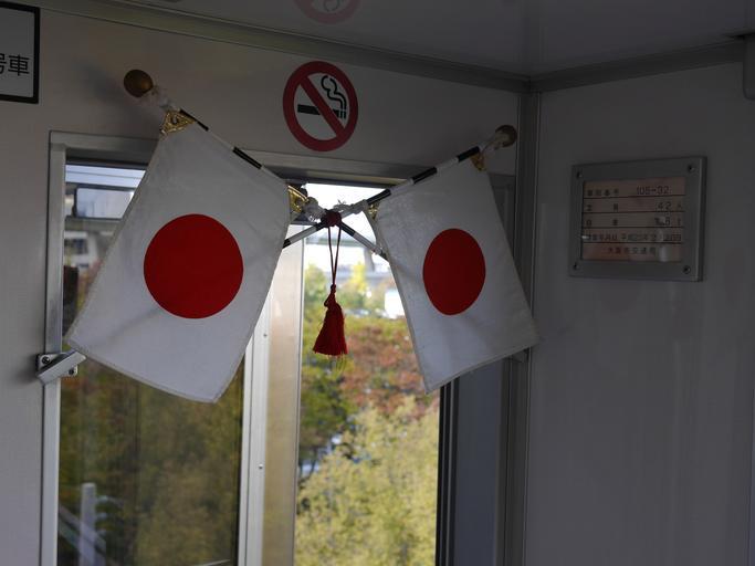 | Keywords: New tram inside Japanese flags.JPG ja 大阪市交 ニュートラムの車内に掲示された日の丸 en Japanese national flags in Osama Municipal Transportation Bureau New Tram 2015-11-03 12 18 46 own Hahifuheho other versions cc-zero Osaka Municipal Transportation Bureau 100 series New Tram Uploaded with UploadWizard |