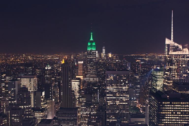 Keywords: new york city skyline buildings high rises towers rooftops night dark lights architecture usa united states america