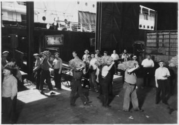 | Keywords: New York, New York - Longshoremen. This shows the prevailing method of transferring bananas from the end on the... - NARA - 518789.tif Scope and content General notes 518789 Local identifier 69-RP-726 Federal Works Agency Work Projects Administration National Research Project ca 1941 - ca 1942 NARA-Author Hine Lewis Wickes 1874-1940 Photographer 1122914 <br /> Still Picture Records Section Special Media Archives Services Division NWCS-S National Archives at College Park 8601 Adelphi Road College Park MD 20740-6001 07/1937 Record group Record Group 69 Records of the Work Projects Administration 1922 - 1944 Record group ARC 398 Lewis Hine Photographs for the National Research Project compiled 1936 - 1937 Series ARC 518291 File unit File unit ARC Variant control numbers NAIL Control Number NWDNS-69-RP-726 yes Other versions <gallery> File New_York _New_York_-_Longshoremen _This_shows_the_prevailing_method_of_transferring_bananas_from_the_end_on_the _-_NARA_-_518789 tif tif File New_York _New_York_-_Longshoremen _This_shows_the_prevailing_method_of_transferring_bananas_from_the_end_on_the _-_NARA_-_518789 jpg jpg </gallery> NARA-cooperation PD-USGov East River Steamships of the United States Dock workers 1937 in New York City Banana trade NARA TIF images with categorized JPGs |