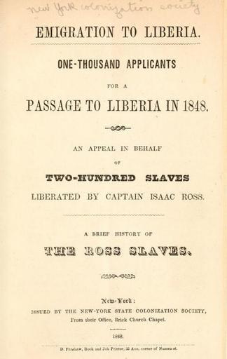 Keywords: New York State Colonization Society (1848) Emigration to Liberia.jpg Book cover from Emigration to Liberia One-thousand applicants for a passage to Liberia in 1848 An appeal in behalf of two-hundred slaves liberated by Captain Isaac Ross A brief history of the Ross slaves https //archive org/stream/emigrationtolibe00newy page/n3/mode/1up Digitalisat Internet Archive Open Library Book contributor The Johns Hopkins University Sheridan Libraries New York State Colonization Society published 1848 https //archive org/about/terms php Internet Archive Book Images Flickr Commons Flickr-no known copyright restrictions PD-US PD-Old DEFAULTSORT 1848 Liberia 01 1848 book covers Uploaded with UploadWizard Books about Liberia |
