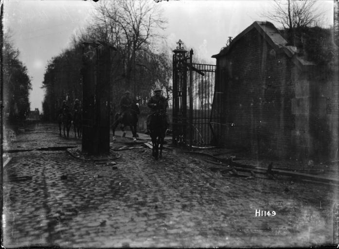 | Keywords: blackandwhite monochrome outdoor black and white New Zealand Divisional Commander, Major General Russell, entering Le Quesnoy, France, on horseback, in the early morning after its capture during World War I. Shows him riding through The Flamengrie (Flemish) Gate of the city after coming from the railway station. Photograph taken on the 5th of November 1918 by Henry Armytage Sanders. Inscriptions: Inscribed - Marginal notes on negative -bottom left: H1149. Quantity: 1 b&w original negative(s). Physical Description: Dry plate glass negative 4 x 5 inches New Zealand Divisional Commander entering Le Quesnoy, France, after its capture during World War I. Royal New Zealand Returned and Services' Association :New Zealand official negatives, World War 1914-1918. Ref: 1/2-013702-G. Alexander Turnbull Library, Wellington, New Zealand. natlib.govt.nz/records/23198559 New Zealand Divisional Commander, Major General Russell, entering Le Quesnoy, France, on horseback, in the early morning after its capture during World War I. Shows him riding through The Flamengrie (Flemish) Gate of the city after coming from the railway station. Photograph taken on the 5th of November 1918 by Henry Armytage Sanders. Inscriptions: Inscribed - Marginal notes on negative -bottom left: H1149. Quantity: 1 b&w original negative(s). Physical Description: Dry plate glass negative 4 x 5 inches New Zealand Divisional Commander entering Le Quesnoy, France, after its capture during World War I. Royal New Zealand Returned and Services' Association :New Zealand official negatives, World War 1914-1918. Ref: 1/2-013702-G. Alexander Turnbull Library, Wellington, New Zealand. natlib.govt.nz/records/23198559 |
