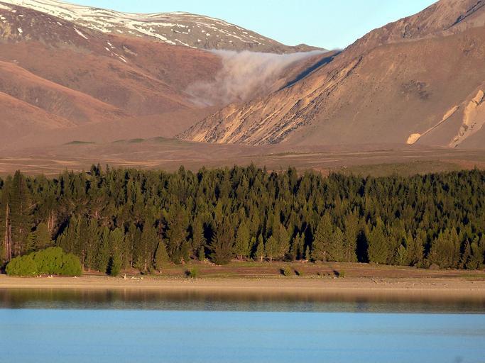 Keywords: new zealand landscape nature south island plant lake forest coniferous forest mountains clouds morgenstimmung