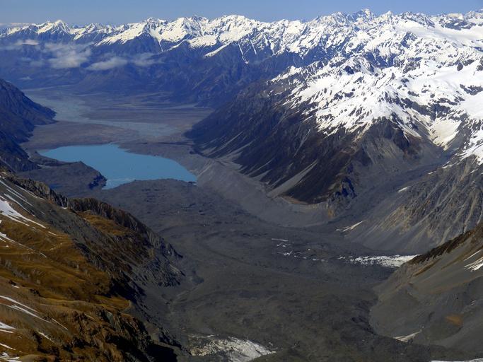 Keywords: new zealand nature landscape south island southern alps alpine mountains flight fly outlook view snow ice glacier valley lake moraine distant view