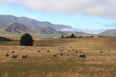 Keywords: new zealand sheep autumn south island mountains graze clouds