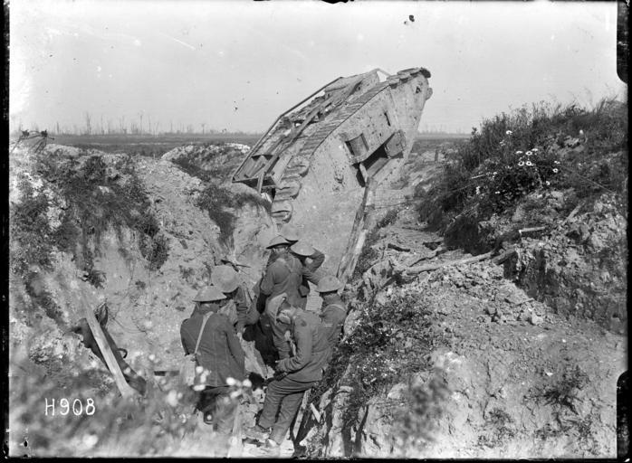 Keywords: blackandwhite monochrome outdoor photo border black and white New Zealand troops and the tank "Jumping Jennie" in a trench at Gommecourt Wood, France, during World War 1. Photograph taken on the 10th of August, 1918, by Henry Armytage Sanders. Inscriptions: Inscribed - Photographer's title on negative -bottom left: H908. Quantity: 1 b&w original negative(s). Physical Description: Dry plate glass negative 4 x 5 inches New Zealand troops, and a tank, in a trench at Gommecourt Wood, France, during World War 1. Royal New Zealand Returned and Services' Association :New Zealand official negatives, World War 1914-1918. Ref: 1/2-013484-G. Alexander Turnbull Library, Wellington, New Zealand. natlib.govt.nz/records/22847962 New Zealand troops and the tank "Jumping Jennie" in a trench at Gommecourt Wood, France, during World War 1. Photograph taken on the 10th of August, 1918, by Henry Armytage Sanders. Inscriptions: Inscribed - Photographer's title on negative -bottom left: H908. Quantity: 1 b&w original negative(s). Physical Description: Dry plate glass negative 4 x 5 inches New Zealand troops, and a tank, in a trench at Gommecourt Wood, France, during World War 1. Royal New Zealand Returned and Services' Association :New Zealand official negatives, World War 1914-1918. Ref: 1/2-013484-G. Alexander Turnbull Library, Wellington, New Zealand. natlib.govt.nz/records/22847962 |