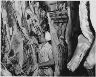| Keywords: Newberry County, South Carolina. A scene of the cold storage room of the P and M Packing Company. T . . . - NARA - 522776.tif Scope and content Full caption reads as follows Newberry County South Carolina A scene of the cold storage room of the P and M Packing Company There are three such rooms in this plant General notes 522776 Local identifier 83-G-44656 Department of Agriculture Bureau of Agricultural Economics Division of Economic Information ca 1922 - ca 1953 Still Picture Records Section Special Media Archives Services Division NWCS-S National Archives at College Park 8601 Adelphi Road College Park MD 20740-6001 04/1941 Record group Record Group 83 Records of the Bureau of Agricultural Economics 1876 - 1959 Record group ARC 412 Photographic Prints Documenting Programs and Activities of the Bureau of Agricultural Economics and Predecessor Agencies compiled ca 1922 - ca 1947 documenting the period ca 1911 - ca 1947 Series ARC 521048 File unit File unit ARC Variant control numbers NAIL Control Number NWDNS-83-G-44656 yes Other versions <gallery> File Newberry_County _South_Carolina _A_scene_of_the_cold_storage_room_of_the_P_and_M_Packing_Company _T_ _ _ _-_NARA_-_522776 tif tif File Newberry_County _South_Carolina _A_scene_of_the_cold_storage_room_of_the_P_and_M_Packing_Company _T_ _ _ _-_NARA_-_522776 jpg jpg </gallery> NARA-cooperation PD-USGov NARA TIF images with categorized JPGs 1941 in Newberry County |