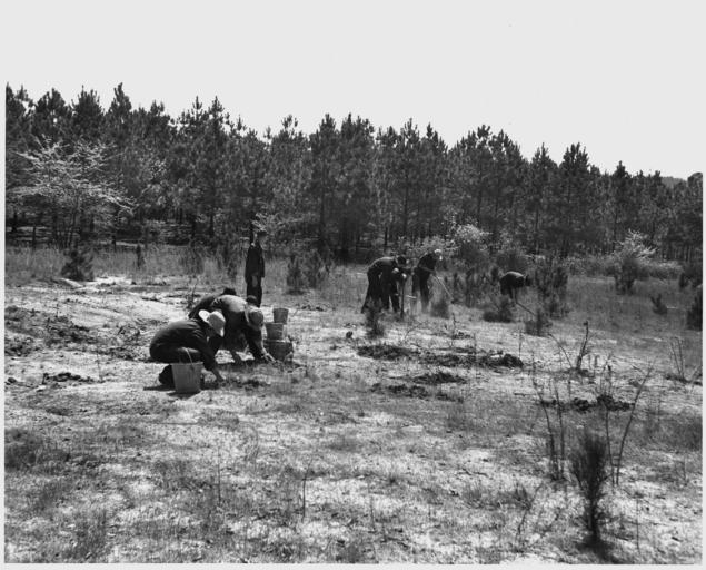 | Keywords: Newberry County, South Carolina. CCC enrollees planting pine seedlings on W. W. Riser's farm, Newber . . . - NARA - 522758.jpg Scope and content Full caption reads as follows Newberry County South Carolina CCC enrollees planting pine seedlings on W W Riser's farm Newberry County South Carolina 215 000 pine seedlings were planted by CCC Camp in Newberry County on farms cooperating with Soil Conservation Districts General notes 522758 Local identifier 83-G-44638 Department of Agriculture Bureau of Agricultural Economics Division of Economic Information ca 1922 - ca 1953 Still Picture Records Section Special Media Archives Services Division NWCS-S National Archives at College Park 8601 Adelphi Road College Park MD 20740-6001 04/1941 Record group Record Group 83 Records of the Bureau of Agricultural Economics 1876 - 1959 Record group ARC 412 Photographic Prints Documenting Programs and Activities of the Bureau of Agricultural Economics and Predecessor Agencies compiled ca 1922 - ca 1947 documenting the period ca 1911 - ca 1947 Series ARC 521048 File unit File unit ARC Variant control numbers NAIL Control Number NWDNS-83-G-44638 Other versions <gallery> File Newberry_County _South_Carolina _CCC_enrollees_planting_pine_seedlings_on_W _W _Riser's_farm _Newber_ _ _ _-_NARA_-_522758 tif tif File Newberry_County _South_Carolina _CCC_enrollees_planting_pine_seedlings_on_W _W _Riser's_farm _Newber_ _ _ _-_NARA_-_522758 jpg jpg </gallery> NARA-cooperation PD-USGov 1941 in Newberry County |