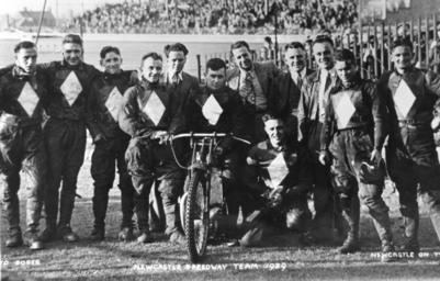 | Keywords: Newcastle Diamonds Speedway Team.jpg en Newcastle Diamonds Speedway Team own collection Author circa 1930 's not required PD-old Category Men of England People of Cumbria Newcastle Diamonds riders Black and white photographic portraits of speedway teams |