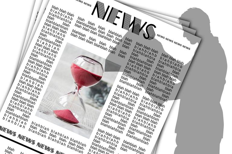 Keywords: news newspaper hourglass time transience fast pace read paper inform policy global information reports text newsletter