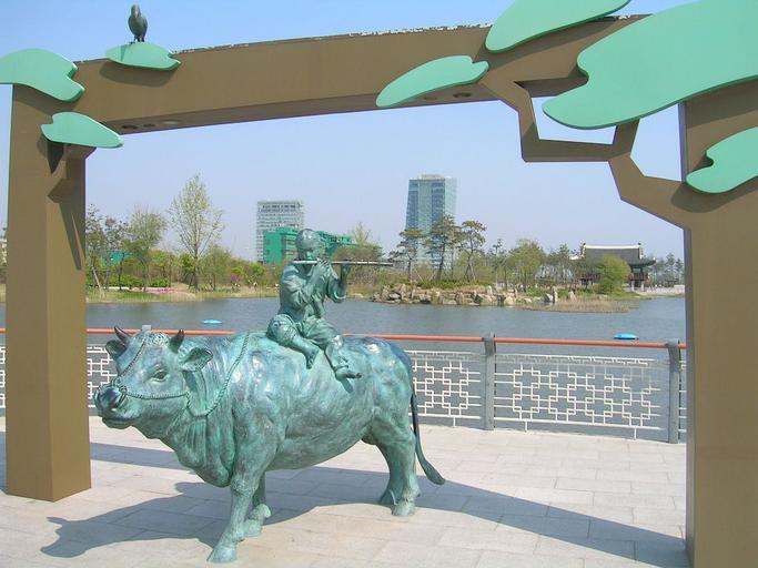 Keywords: NewSongdo4.JPG en This is Song-do Park in Song-do City Own HunkinElvis 2009-05-05 Songdo International Business District Statues of cows