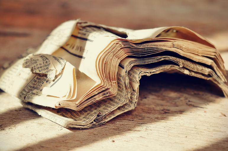 Keywords: newspaper daily newspaper day sheet pages crumpled old antique font old script