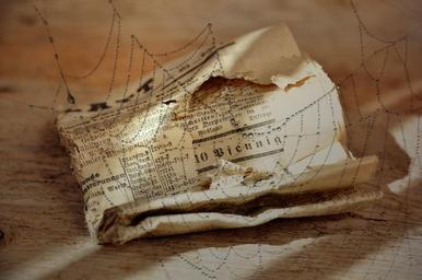Keywords: newspaper daily newspaper folded crumpled old antique wood floor cobweb font information