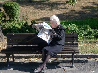 Keywords: newspaper read inform park bench reading a newspaper elderly woman grandma