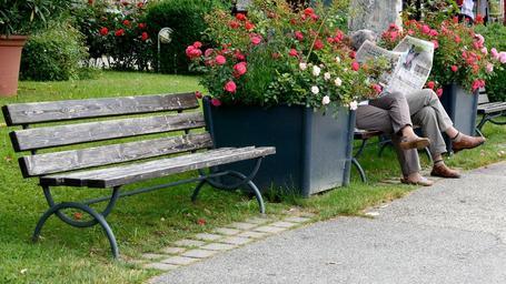 Keywords: newspaper read information news bank bench seat rest