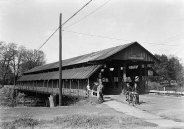 | Keywords: Newton Falls Covered Bridge.jpg 74001636 41 11 17 N 80 58 17 W Eastern portal of the w Newton Falls Covered Bridge which carries Arlington Road over the Mahoning River in Newton Falls Ohio Newton Falls Ohio United States Built in 1831 it is listed on the National Register of Historic Places Library of Congress Prints and Photograph Division Historic American Buildings Survey HABS http //hdl loc gov/loc pnp/hhh oh0337 OHIO 78-NEWT 1-1 1936-10-26 Carl Waite OHIO 78-NEWT 1-1 hhh oh0337 Children cycling Newton Falls Covered Bridge Other people's pictures by User Nyttend |