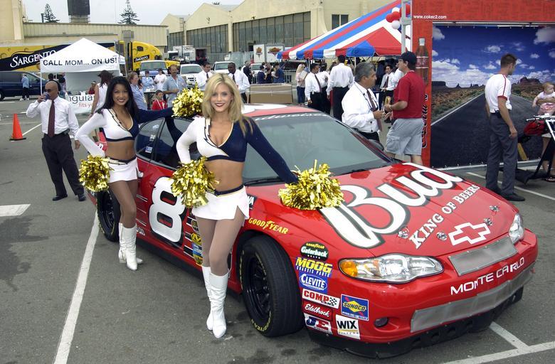 Keywords: NFL Cheerleaders NASCAR.jpg Caption 040723-N-2830P-002 Naval Air Station North Island San Diego Calif July 23 2004 - NFL Cheerleaders from San Diego Chargers pose with NASCAR's Dale Earnhardt Jr No 8 show car on the pier with family and friends waiting the arrival of USS Ronald Reagan CVN 76 The Navy's newest and most technologically advanced aircraft carrier is completing a two month transit from Norfolk Va Homeporting celebrations included various dignitaries like former First Lady Nancy Reagan members of Congress state officials and celebrities The ship commanded by Capt James A Symonds was commissioned in July 2003 U S Navy photo by Photographer's Mate Airman Michael Patterson RELEASED Source http //www news navy mil/view_single asp id 16574 navy mil PD-USGov-Military-Navy 2004 in NASCAR Nextel Cup Dale Earnhardt Jr in 2004 Chevrolet Monte Carlo of Dale Earnhardt Jr Auto racing girls Cheerleaders |