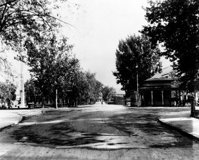 | Keywords: NH 43094: Washington Navy Yard, Washington, D.C. View looking south down Dahlgren Avenue from just inside the Main Entrance (Latrobe Gate), circa the early 1900s. The Commandant's Office (Building # 1) is in the center distance, at the foot of Dahlgren Avenue. Note flagstaff and relic cannon to the left, at the head of Leutze Park. U.S. Naval History and Heritage Command Photograph. (2016/01/14). NH 43094: Washington Navy Yard, Washington, D.C. View looking south down Dahlgren Avenue from just inside the Main Entrance (Latrobe Gate), circa the early 1900s. The Commandant's Office (Building # 1) is in the center distance, at the foot of Dahlgren Avenue. Note flagstaff and relic cannon to the left, at the head of Leutze Park. U.S. Naval History and Heritage Command Photograph. (2016/01/14). |