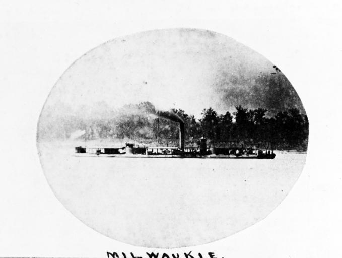 | Keywords: blackandwhite monochrome white background round black and white NH 510: USS Milwaukee (1864-1865). In the Mississippi River area, circa 1864-65. Photographed by T. Lilienthal, New Orleans, Louisiana. Courtesy of the Philibrick Collection, Kittery, Maine. . U.S. Naval History and Heritage Command Photograph. (2016/05/26). NH 510: USS Milwaukee (1864-1865). In the Mississippi River area, circa 1864-65. Photographed by T. Lilienthal, New Orleans, Louisiana. Courtesy of the Philibrick Collection, Kittery, Maine. . U.S. Naval History and Heritage Command Photograph. (2016/05/26). |