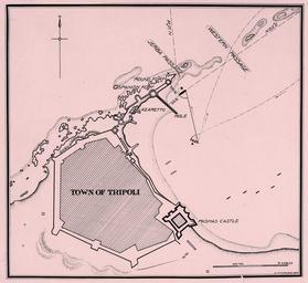 Keywords: sketch drawing cartoon photo border text illustration monochrome writing Burning of the frigate Philadelphia in Tripoli harbor, 16 February 1804. Chart by Charles Wellington Furlong, 1904, depicting (by dot and dash lines) the course followed by the ketch Intrepid, under Lieutenant Stephen Decatur, as she entered and left Tripoli harbor on her mission to destroy the captured USS Philadelphia. Heavy dashed line indicates Philadelphia's drift after she was set afire. Position "A" marks Philadelphia's position when boarded by Decatur's men, while "B" is the location of her wreck when Furlong located it about a century later and recovered artifacts. Position "X" (just west of the Jerba Passage) is the location of Intrepid's wreck after she blew up on 4 September 1804, during another mission into Tripoli harbor. Courtesy of Charles Wellington Furlong, July 1939. NHHC Photograph Collection, NH 56745. Burning of the frigate Philadelphia in Tripoli harbor, 16 February 1804. Chart by Charles Wellington Furlong, 1904, depicting (by dot and dash lines) the course followed by the ketch Intrepid, under Lieutenant Stephen Decatur, as she entered and left Tripoli harbor on her mission to destroy the captured USS Philadelphia. Heavy dashed line indicates Philadelphia's drift after she was set afire. Position "A" marks Philadelphia's position when boarded by Decatur's men, while "B" is the location of her wreck when Furlong located it about a century later and recovered artifacts. Position "X" (just west of the Jerba Passage) is the location of Intrepid's wreck after she blew up on 4 September 1804, during another mission into Tripoli harbor. Courtesy of Charles Wellington Furlong, July 1939. NHHC Photograph Collection, NH 56745. |