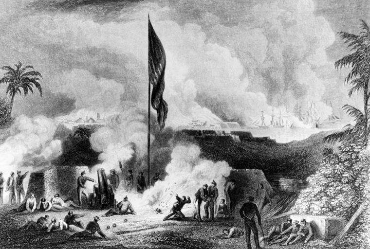 | Keywords: blackandwhite monochrome surreal outdoor black and white On 9 March 1847, an Army-Navy force began the siege of Veracruz, Mexico. The Naval force was commanded by Commodore David Conner and the Army force was led by Major General Winfield Scott. The force was opposed by the Castle of San Juan d’Ulloa. Between 9 and 10 March, approx 12,000 US troops were landed on the beaches, along with their horses, mules, artillery, and supplies. Veracruz surrendered on the 29th, and the forces made their way to Mexico City. Mexican-American War – Veracruz, Mexico. The Battle of Veracruz, Mexico. Steel engraving drawn by H. Billlings and engraved by D.G. Thompson, 1863. The engraving shows the American squadron bombing the Mexican Fort. NHHC Photograph Collection, NH. 65708 On 9 March 1847, an Army-Navy force began the siege of Veracruz, Mexico. The Naval force was commanded by Commodore David Conner and the Army force was led by Major General Winfield Scott. The force was opposed by the Castle of San Juan d’Ulloa. Between 9 and 10 March, approx 12,000 US troops were landed on the beaches, along with their horses, mules, artillery, and supplies. Veracruz surrendered on the 29th, and the forces made their way to Mexico City. Mexican-American War – Veracruz, Mexico. The Battle of Veracruz, Mexico. Steel engraving drawn by H. Billlings and engraved by D.G. Thompson, 1863. The engraving shows the American squadron bombing the Mexican Fort. NHHC Photograph Collection, NH. 65708 |