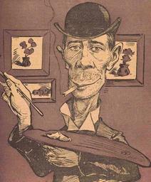 | Keywords: Nicolae Petrescu-Găină - Ștefan Luchian.jpg B-II-m-A-18789 en Caricature of the painter and friend Ştefan Luchian Probably completed around the time when Luchian and Petrescu-Găină began sharing the same work location see Ionel Jianu Petru Comarnescu Ştefan Luchian Editura de stat pentru literatură şi artă Bucharest 1956 Published on the cover of Furnica magazine with a caption announcing Luchian's exhibit at the Romanian Atheneum Furnica 14/1904 available through the Bucharest City Library http //digitool dc bmms ro 8881/R/3YEN91RDQHN2LLAT98CMIIVH6GP3F19S45D2I6YYIM6AN3KQEN-00734 func search DacoRomanica archive Creator Nicolae Petrescu-Găină 1904-12-19 Furnica magazine Nicolae Petrescu-Găină Ștefan Luchian 1904 cartoons People in 1904 1904 in Romania Caricatures of painters Men smoking cigarettes in art Romanian Athenaeum PD-old-auto 1931 |