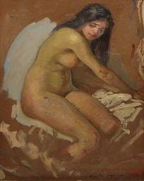 | Keywords: Nicolae Vermont - Nud02.jpg Nicolae Vermont - Nud ulei pe carton semnat datat 1912 dreapta jos; pe verso o eboşă 43 3x32 6 cm http //goldart ro/now html cPath 22 1912 Creator Nicolae Vermont Reproduction of a painting that is in the public domain because of its age PD-old-auto 1932 Female nudes by Nicolae Vermont 1912 paintings Paintings of nude sitting females in the 20th century | ||||