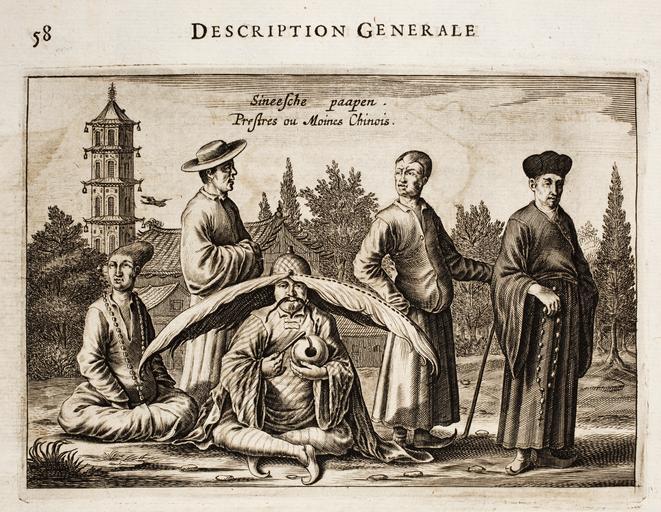 | Keywords: Nieuhof-Description-générale-de-la-Chine-1665 0852.tif Information Draughtsman Creator Johan Nieuhof Engraver from w c Sineesche-paapen-0103-cropped png copied with corrections fr Prêtres ou moines chinois dessinés entre 1655-1657 D'apres Lach et Kley 1993 la personne à l'extreme gauche est un Lama Mongol au milieu avec le grand chapeau tient en main un Muyu Poisson en Bois L'homme à droit est un prêtre bouddhiste Les autres debout sont des moines bouddhistes en Chinese priests and monks drawn by the Dutch visitors in 1655-1657 According to Lach Kley 1993 the leftmost sitting person wears the headgear of a Mongol Lama; the sitting person in the middle with a big hat holds a muyu wooden fish The standing man on the right with beads is a Buddhist priest The other two standing people may be Buddhist monks Sineesche paapen Chinese monniken of priesters Links een Mongoolse Lama de grote hoed in het midden is een bedelaar met een houten vis of Chinees tempelblok een klopinstrument in de hand Rechts een Boeddhistische priester met kralen De twee staande mannen kunnen Boeddhistische monniken zijn PD-Art-100 D-Vorm Peace Palace Library collection de la Chine enrichie d'un grand nombre de tailles douces / Le tout recueilli par le Mr Jean Nieuhoff ; mis en françois orné et assorti de mille belles particularitez par Jean le Carpentier historiographe Publisher A Leyde pour Jacob de Meurs marchand libraire et graveur de la ville d'Amsterdam Printer Meurs Jacob van Amsterdam 1651-1680 -générale-de-la-Chine-1665_0852 http //www peacepalacelibrary nl/images/wikimedia/168A15-244476584_MGG_0852 tif GWToolset_Batch_Upload Prints from Nieuhof Ambassade vers la Chine 1665 at the Peace Palace Library Images from the Peace Palace Library Religion in China Wooden fish Buddhism in China |
