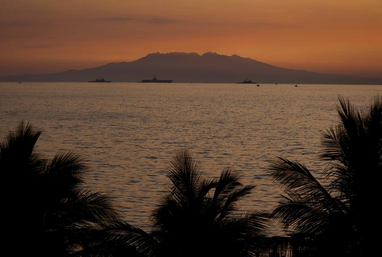 Keywords: night dusk mountains trees silhouette silhouettes nature outside palms palm trees tropics tropical sunset beautiful ships