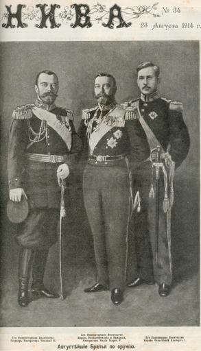 Keywords: Nikolai II and George V and Albert I.jpg Августейшие б атья по о ужию Импе ато Все оссийский иколай II английский ко оль Гео г V и ко оль Бельгии Альбе т I ачало П В Об атите внимание на внешнее сходство одственников - ко оля Англии Гео га и усского ца я иколая являвшихся двою одніми б атьями Niva magazine cover from August 23 1914 showing Tsar Nicholas II left King George V of the United Kingdom center and King Albert I of Belgium right обложка жу нала ива от 23 августа 1914 года 1914 свой скан бумажного жу нала участником Vizu 2007 в жу нале не указан PD-1923 PD-RusEmpire original upload log page ru wikipedia D0 9D D0 B8 D0 BA D0 BE D0 BB D0 B0 D0 B9_II_ D0 B8_ D0 B0 D0 BD D0 B3 D0 BB D0 BA D0 BE D1 80 D0 BE D0 BB D1 8C_ D0 93 D0 B5 D0 BE D1 80 D0 B3_V_ D0 B8_ D0 BA D0 BE D1 80 D0 BE D0 BB D1 8C_ D0 91 D0 B5 D0 BB D1 8C D0 B3 D0 B8 D0 B8_ D0 90 D0 BB D1 8C D0 B1 D0 B5 D1 80 D1 82_I_ _1914 jpg 2007-08-01 12 05 Vizu 3758×6564× 4621999 bytes <nowiki> К аткое описание Изоб ажение Описание иколай_II_и_англ ко оль_Гео г_V_и_ко оль_Бельгии_Альбе т_I_ _1914 jpg Авто Участник Vizu В</nowiki> Nicholas II of Russia in 1914 George V of the United Kingdom Albert I of Belgium Niva magazine 1914 Military of the Russian Empire in old photos 1914-08-23 |