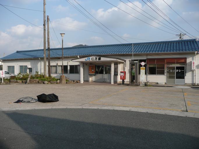 Keywords: Nima station.JPG en 仁万駅舎 自身で撮影 上 ジョー 2010-12-23 Cc-zero Stations of San'in Main Line Railway stations opened in 1917 Train stations in Shimane prefecture