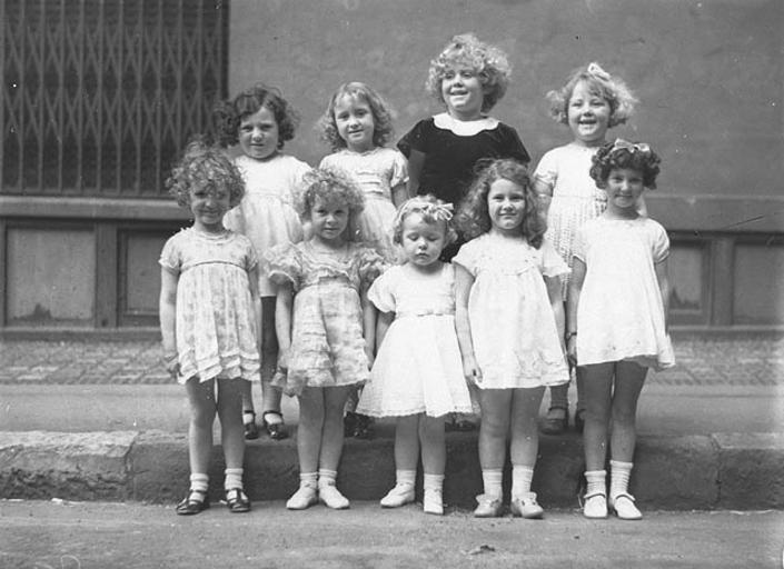 | Keywords: sam hood samhood shirley temple shirleytemple sybil frederick sybilfrederick children standing nine group girls curls curb 1934 newtown contest state library of new south wales statelibraryofnewsouthwales blackandwhite monochrome black and white Format: Glass photonegative Notes: Reproduced in Sydney Exposures...[by] Alan Davies (1991), p.21. Sydney Exposures book and exhibition caption: Shirley Temple look-alikes, Newtown, 2 October 1934 : In the mid-1930s, the enormous success of child film star Shirley Temple popularised tap dancing classes around the world and curly locks for little girls became de rigueur. Competitions to find Shirley Temple look-alikes proved popular, but the resemblance between the film star and the entrants in this group is apparent only to their mothers. There is a little snippet and photo of the winner here: nla.gov.au/nla.news-article121640432 Find more detailed information about this photograph: acms.sl.nsw.gov.au/item/itemDetailPaged.aspx?itemID=52256 Search for more great images in the State Library's collections: acms.sl.nsw.gov.au/search/SimpleSearch.aspx From the collection of the State Library of New South Wales www.sl.nsw.gov.au Format: Glass photonegative Notes: Reproduced in Sydney Exposures...[by] Alan Davies (1991), p.21. Sydney Exposures book and exhibition caption: Shirley Temple look-alikes, Newtown, 2 October 1934 : In the mid-1930s, the enormous success of child film star Shirley Temple popularised tap dancing classes around the world and curly locks for little girls became de rigueur. Competitions to find Shirley Temple look-alikes proved popular, but the resemblance between the film star and the entrants in this group is apparent only to their mothers. There is a little snippet and photo of the winner here: nla.gov.au/nla.news-article121640432 Find more detailed information about this photograph: acms.sl.nsw.gov.au/item/itemDetailPaged.aspx?itemID=52256 Search for more great images in the State Library's collections: acms.sl.nsw.gov.au/search/SimpleSearch.aspx From the collection of the State Library of New South Wales www.sl.nsw.gov.au |