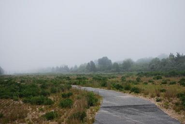 Keywords: fog road morning Ninigret Pond National Wildlife Refuge Rhode Island