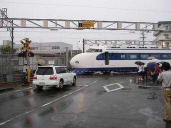 | Keywords: Nishi-Iba-Dai-ichi-Cross.JPG An 0 series shinkansen car being moved over the level crossing near Hamamatsu Shinkansen Works in Shizuoka Prefecture Japan ja 西伊場第1踏切 フル規格の新幹線電車が自力で 過する踏切は日 でもここだけ Own Cassiopeia_sweet 2006-07-23 250px Shinkansen 0 Level crossings in Japan Hamamatsu Shizuoka July 2006 in Japan 2006 in rail transport in Japan Photographs taken on 2006-07-23 Taken with Olympus u30D / S-410D / u410D | ||||