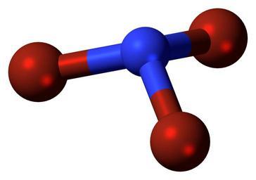 Keywords: Nitrogen-tribromide-3D-balls.png Ball-and-stick model of the nitrogen tribromide molecule a compound with few practical uses Colour code 3C50FA Nitrogen N blue<br> B42814 Bromine Br red-brown<br> 2011-03-11 own DS Visualizer Jynto talk Space-filling version cc-zero Nitrogen halides Bromides Images by Jynto |