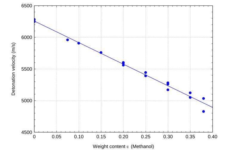 | Keywords: Nitromethane methanol detonation velocity.svg en Detonation velocity of nitromethane methanol mixtures de Detonationsgeschwindigkeit von Nitromethan-Methanol-Mischungen own Steffen 962 2011-10-28 data from Koldunov S A ; Ananin A V ; Garanin V A ; Sosikov V A ; Torunov S I Detonation Parameters of Nitromethane/Methanol Mixtures in Central Eur J Energ Mat 6 2009 7 “14 Cc-zero Nitromethane | ||||