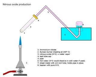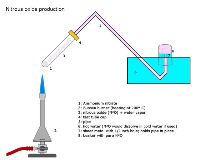 MAKE A MEME View Large Image Nitrous oxide production.png en A schematic showing the laboratory production of nitrous oxide This setup is the same one Joseph Priestley used The setup was made based on an image of the 1949 Popular Mechanics article by Kenneth M Swezey ...
