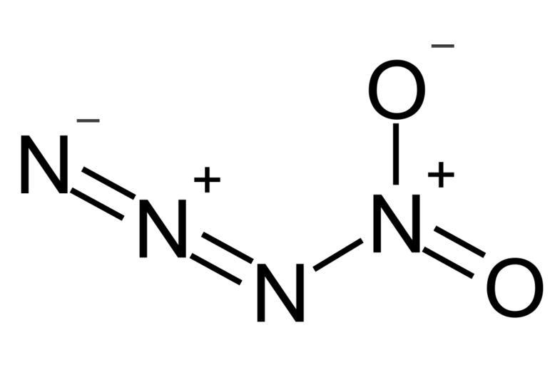 Keywords: Nitryl azide structure.svg en Structure of Nitryl azide de Struktur von Nitrylazid own Steffen 962 2012-10-06 PD-chem Nitryl azide Cc-zero