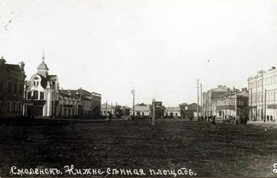 | Keywords: Nizhne-Sennaya square.png en View of Nizhne-Sennaya Square in Smolensk now - part of Kolkhoznaya square ru Вид ижне-Сенной площади в Смоленске ныне - часть Колхозной площади О игинальная отк ытка е установлены before 1917 года PD-RusEmpire 20th-century postcards Postcards of Smolensk |