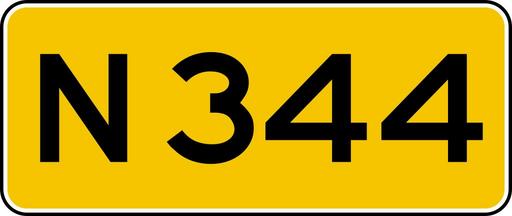 Keywords: NLD-N344.svg en Netherlands provincial highway shield nl Provincionale weg/rijksweg schild pl Tabliczka holenderskiej drogi prowincjonalnej/autostrady own 2014-06-09 Fredddie Miko101 PD-NL-verkeersbord Diagrams of national and provincial road number signs of the Netherlands |
