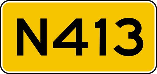Keywords: NLD-N413.svg en Netherlands provincial highway shield nl Provincionale weg/rijksweg schild pl Tabliczka holenderskiej drogi prowincjonalnej/autostrady own 2015-01-21 Fredddie PD-NL-verkeersbord Diagrams of national and provincial road number signs of the Netherlands |