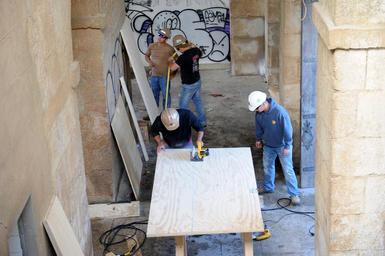 | Keywords: NMCB1 builds structures to improve training during Trident Juncture 151020-N-SD965-292.jpg en 151020-N-SD965-292 SETUBAL Portugal Oct 20 2015 U S Navy Seabees measure and cut wood during a Naval Mobile Construction Battalion NMCB 1 construction project to install doors in a training structure in Setubal Portugal Oct 20 2015 NMCB 1 constructed training structures to provide a realistic training environment for the U S Special Operations Command Europe to use during exercise Trident Juncture scenarios Trident Juncture is the largest NATO Exercise to be conducted in the past 20 years with around 36 000 troops from more than 30 nations to include both NATO Allies and Partners U S Navy photo by Mass Communication Specialist 1st Class Brannon Deugan/Not Released <br>Unit Navy Media Content Services 2015-10-20 Petty Officer 1st Class Brannon Deugan https //www dvidshub net/image/2250880/nmcb1-builds-structures-improve-training-during-trident-juncture 151020-N-SD965-292 2015-10-27 03 25 SETUBAL PT PD-USGov-Military-Navy United States Navy Seabees Images from DoD uploaded by Fæ |