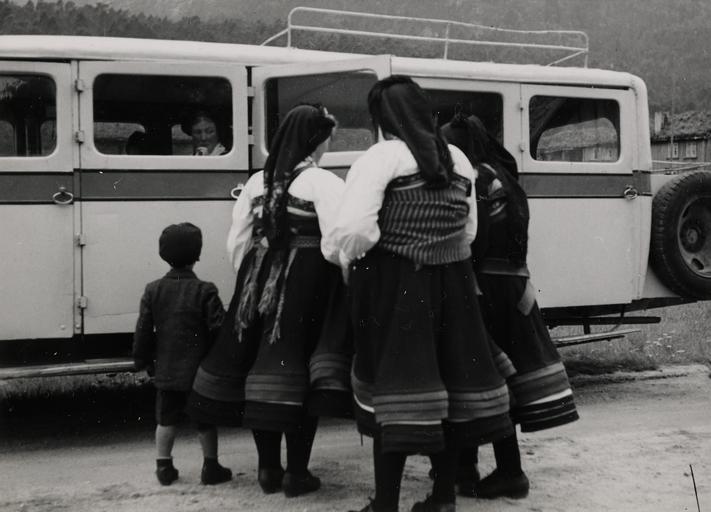 | Keywords: elisabeth meyer elisabethmeyer documentary photography documentaryphotography setesdal norway costume traditional costume traditionalcostume people rural meyer outdoor blackandwhite black and white Meyer, Elisabeth Three women and a child in front of a bus. Photographs from Setesdal around 1940-42. Gelatin silver print, baryta NMFF.002574-26 Meyer, Elisabeth Three women and a child in front of a bus. Photographs from Setesdal around 1940-42. Gelatin silver print, baryta NMFF.002574-26 | ||||