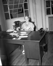 Keywords: blackandwhite monochrome indoor black and white From the September 3, 1938 issue of the News and Observer: "Almost as essential to the production of The News and Observer as the press itself, Miss Mary Hines Horton, known affectionately to every employee as "Miss Mamie," is the dean of the business staff. Vice-president and Cashier of the News and Observer, Miss Horton takes in every penny paid to the paper--and more consoling to hose who put out the paper--serves weekly as "paymaster general." From the N&O negative collection, State Archives of North Carolina, Raleigh, NC. Photo copyrighted by the Raleigh News and Observer. Illegal to use without express permission from the N&O. From the September 3, 1938 issue of the News and Observer: "Almost as essential to the production of The News and Observer as the press itself, Miss Mary Hines Horton, known affectionately to every employee as "Miss Mamie," is the dean of the business staff. Vice-president and Cashier of the News and Observer, Miss Horton takes in every penny paid to the paper--and more consoling to hose who put out the paper--serves weekly as "paymaster general." From the N&O negative collection, State Archives of North Carolina, Raleigh, NC. Photo copyrighted by the Raleigh News and Observer. Illegal to use without express permission from the N&O. |