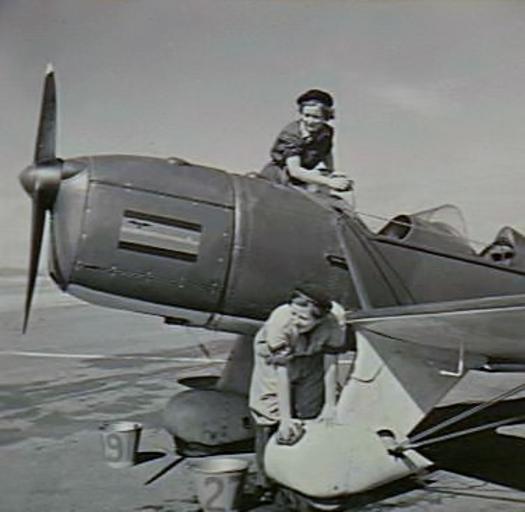 Keywords: No. 5 EFTS RAAF Ryan (AWM VIC1162).JPG Narromine NSW Two WAAAF Flight Mechanics engaged in washing down a Ryan aircraft at No 5 Elementary Flying Training School RAAF This aircraft was flown by the Chief Flying Instructor Squadron Leader Sqn Ldr K Wedgwood and had a Sqn Ldr's insignia painted on the nose VIC1162 1943 RAAF PD-Australia PD-1996 Australia Aircraft of the Royal Australian Air Force Ryan ST |