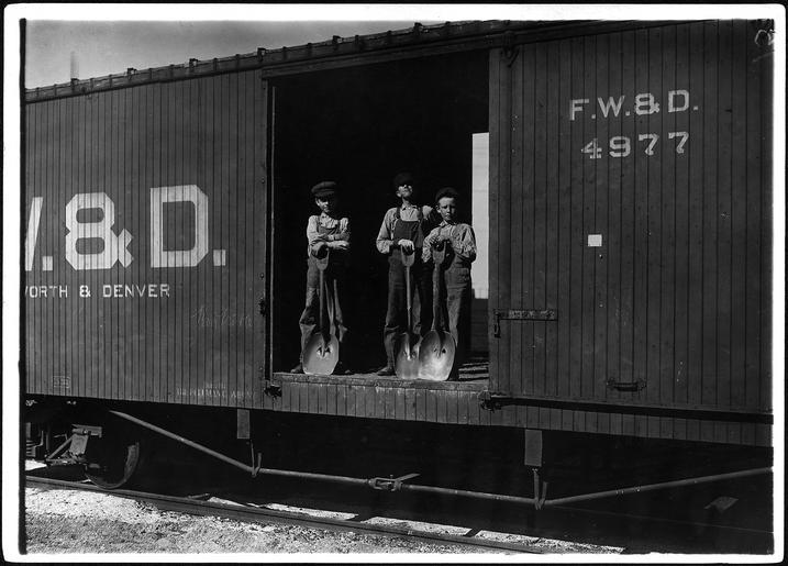 | Keywords: No caption. Three young boys with shovels standing in doorway of a Fort Worth & Denver train car. - NARA - 523335.tif Scope and content General notes 523335 Local identifier 102-LH-1708 Department of Commerce and Labor Children's Bureau 1912 - 1913 NARA-Author Hine Lewis Wickes 1874-1940 Photographer 1122914 <br /> Still Picture Records Section Special Media Archives Services Division NWCS-S National Archives at College Park 8601 Adelphi Road College Park MD 20740-6001 Record group Record Group 102 Records of the Children's Bureau 1908 - 2003 Record group ARC 431 National Child Labor Committee Photographs taken by Lewis Hine compiled ca 1912 - ca 1912 documenting the period 1908 - 1912 Series ARC 523064 File unit File unit ARC Variant control numbers NAIL Control Number NWDNS-102-LH-1708 yes Other versions <gallery> File No_caption _Three_young_boys_with_shovels_standing_in_doorway_of_a_Fort_Worth_ amp _Denver_train_car _-_NARA_-_523335 tif tif File No_caption _Three_young_boys_with_shovels_standing_in_doorway_of_a_Fort_Worth_ amp _Denver_train_car _-_NARA_-_523335 jpg jpg </gallery> NARA-cooperation PD-USGov Child labor in the United States NARA TIF images with categorized JPGs |