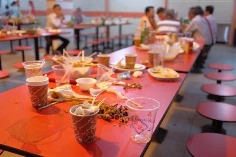 MAKE A MEME View Large Image chinatown complex used disposable cutlery mess left behind night 2014 singapore public domain publicdomain dining table dinner table table Chinatown Complex Chinatown Complex