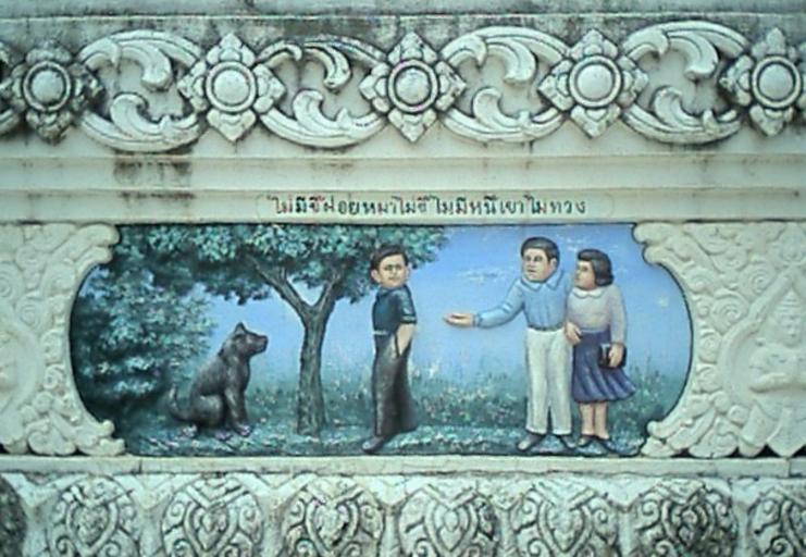 | Keywords: No Debt, No Trouble.07.JPG ไม่มีขี้ภà¸à¸¢à¸«à¸¡à¸²à¹„ม่ขี้ ไม่มีหนี้๠ขาไม่ทวง -- Illustrated Proverb No debt no trouble Phra That Phanom chedi Amphoe That Phanom Nakhon Phanom Province northeastern Thailand 2004-06-21 Pawyi Lee Piblic Domani Reliefs in Thailand Wat Phra Tat Phanom People with dogs in art Proverbs in art Debtors Thai proverbs | ||||